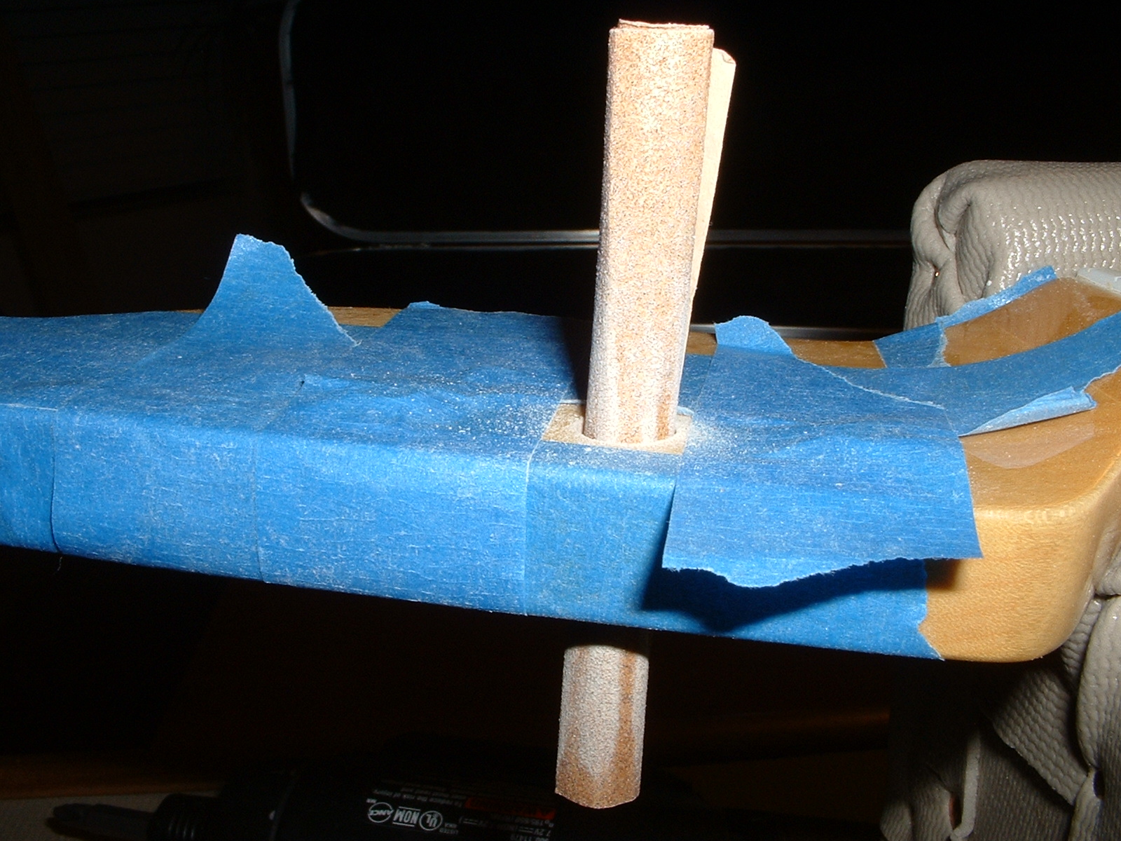 The finish on the neck and headstock made the holes for the tuner bushings too small. I had to widen each hole. The best way I concocted to do this was using two different grits of rolled up sandpaper.