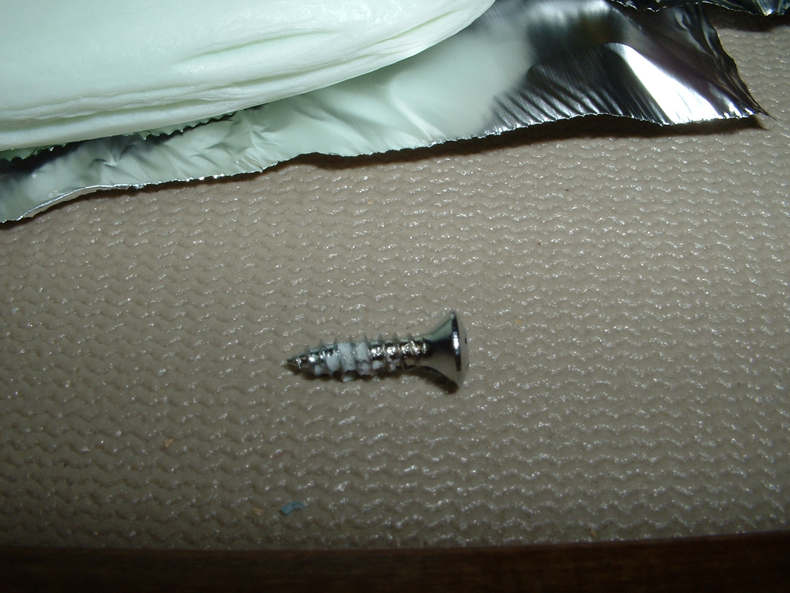 The old soap trick - coating the screw for easy installation. You can see the old bar of soap on a piece of foil just behind the screw. [Added 10/24/06]