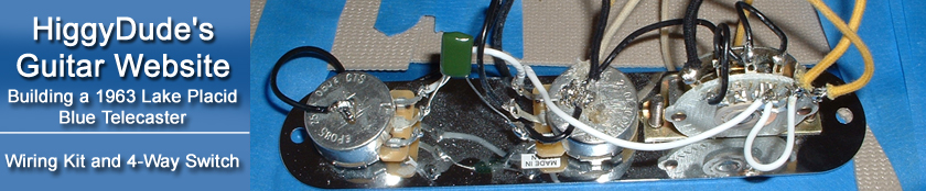 I thought using a 4-way switch would offer much more tonal capabilities so I readily embraced this task. What I found was a plethora of wiring diagrams for the Tele-4-way-switch - each claiming to be the "correct" way to wire the set-up. I settled on the wiring diagram that came with the Fender pickups - and that appeared to be a wise choice.